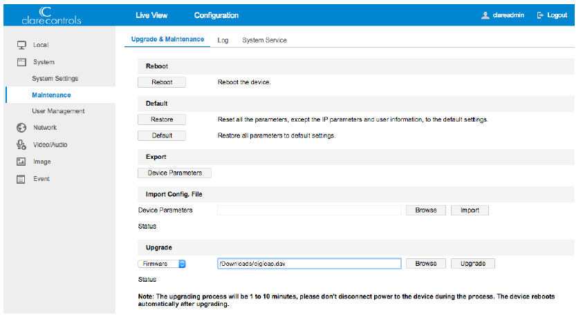 Configuration > System > Maintenance > Upgrade & Maintenance