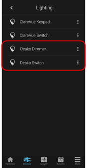 - Deako Lighting devices must be added and configured using the Deako app. Once added, the devices are auto discovered in Clare.