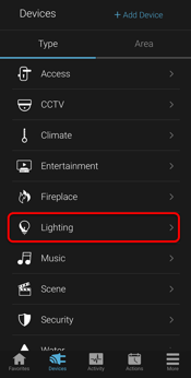- Select the device category (lighting), and then tap + Add next to the desired device.