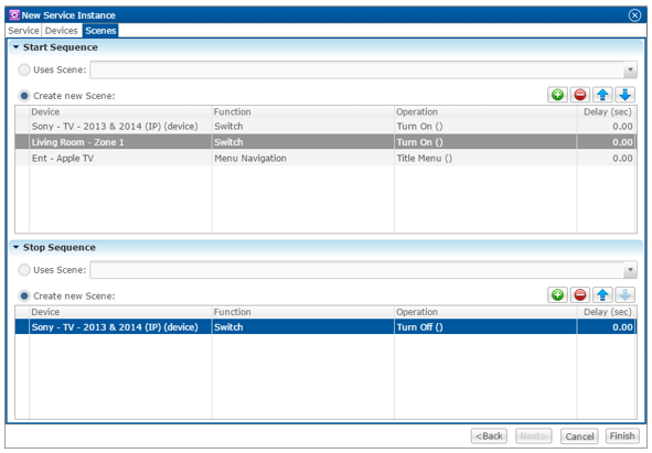 1. In the Start Sequence field, select Create new Scene, and then click the New Device Operation button.